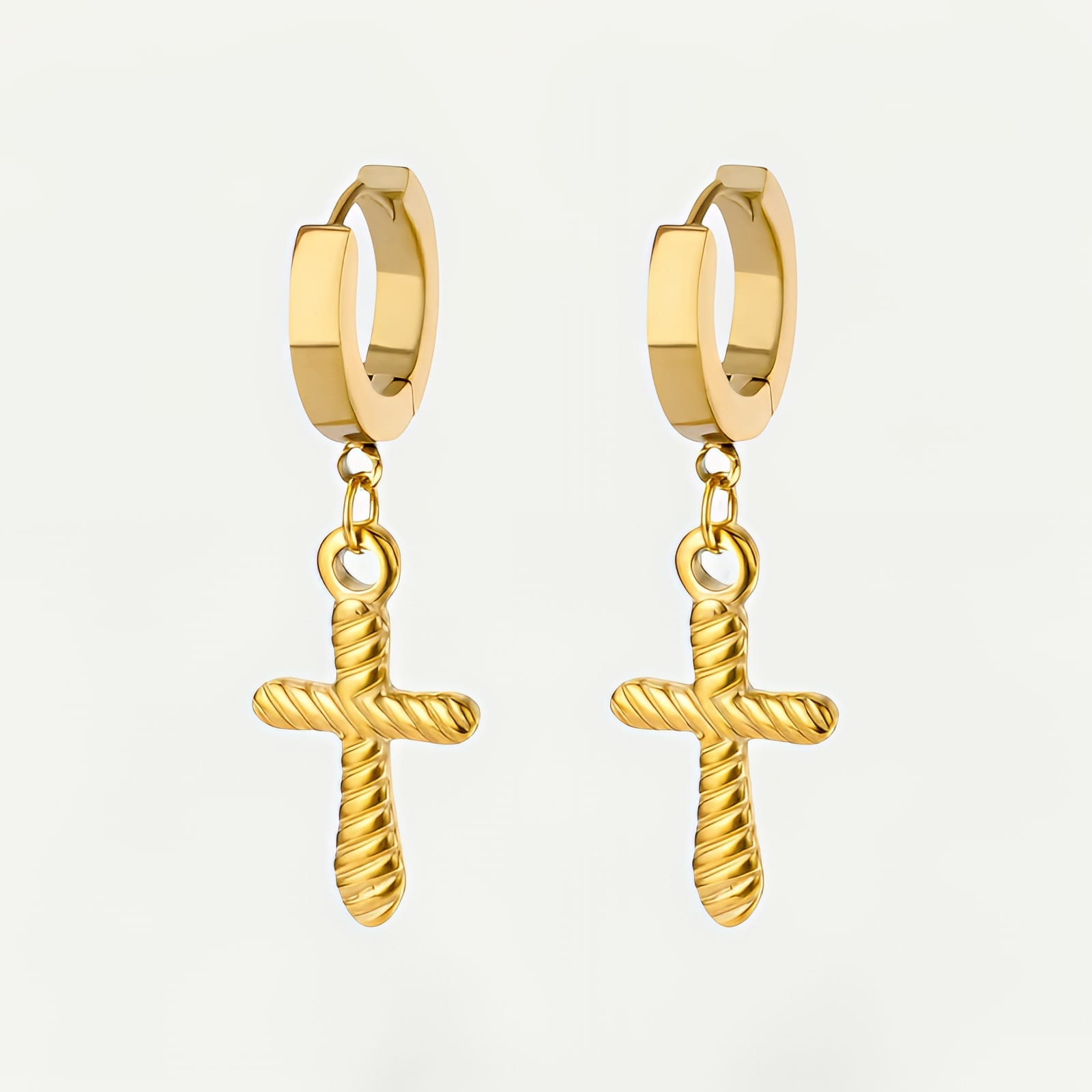 - Croix torsadée suspendue à des créoles lisses